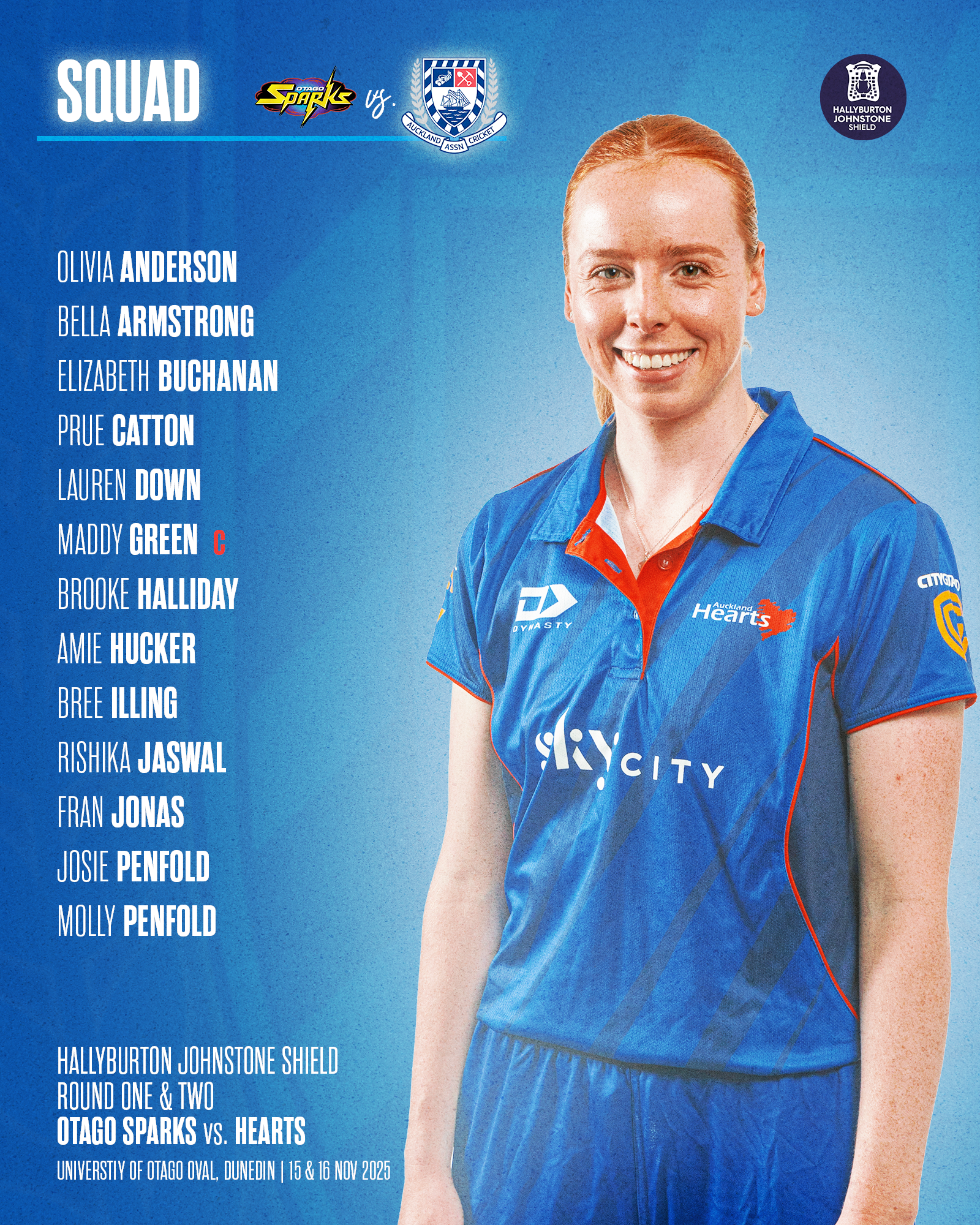 The Auckland HEARTS open their 2025-26 Hallyburton Johnstone Shield campaign this weekend with back-to-back clashes against the Otago Sparks at University of Otago Oval in Dunedin.
