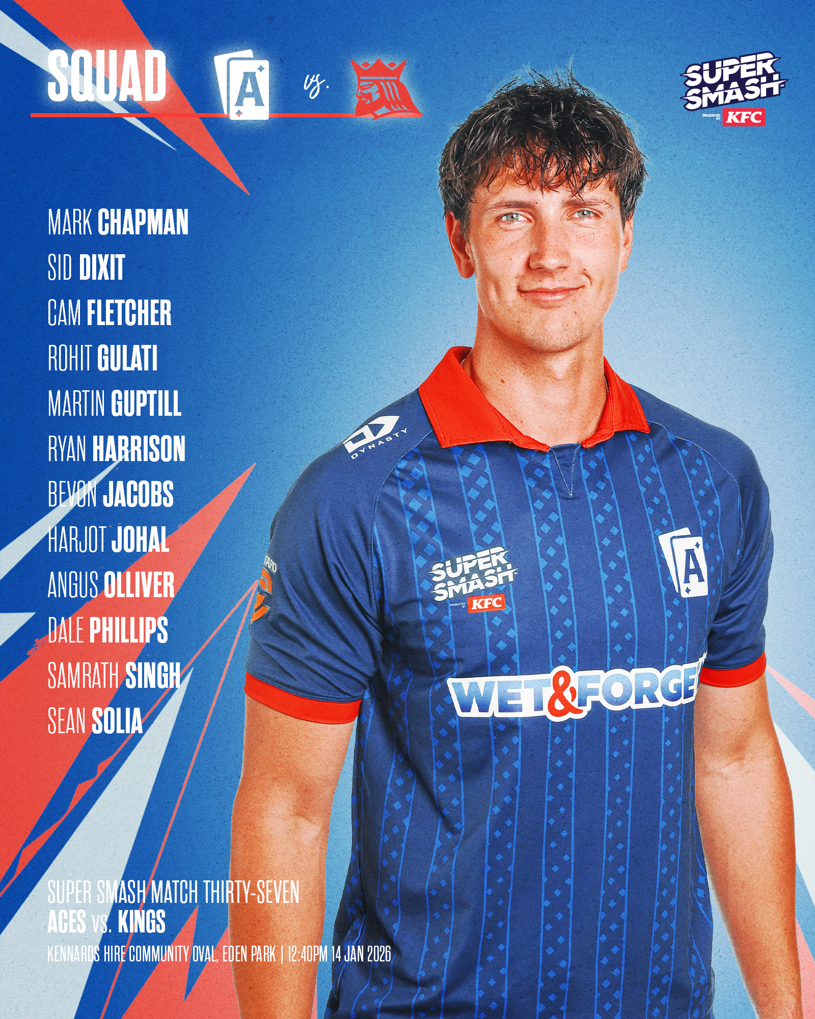 Super Smash matchesAuckland ACES vs Kings | 12.40pmAuckland HEARTS vs Magicians | 4.50pmWednesday 14 January 2026Eden Park’s Kennards Hire Community Oval, Auckland