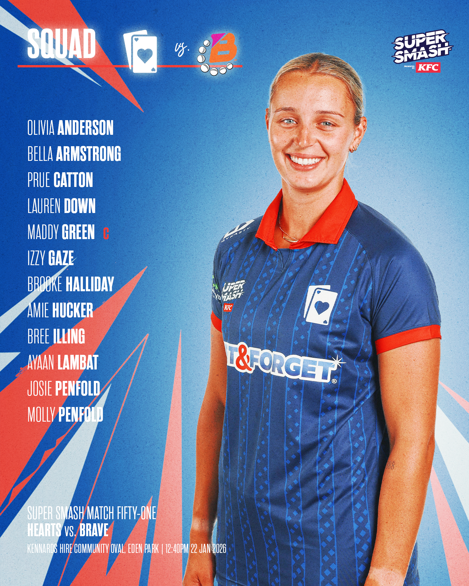 With the ladder tightly packed, both the HEARTS and Brave will be looking to build some breathing room as the competition enters its final stages. The HEARTS will again look to Brooke Halliday to anchor the batting lineup. Halliday is the leading run-scorer in the competition this season, with 209 runs at an average of 34.83, and remains central to Auckland’s finals push.