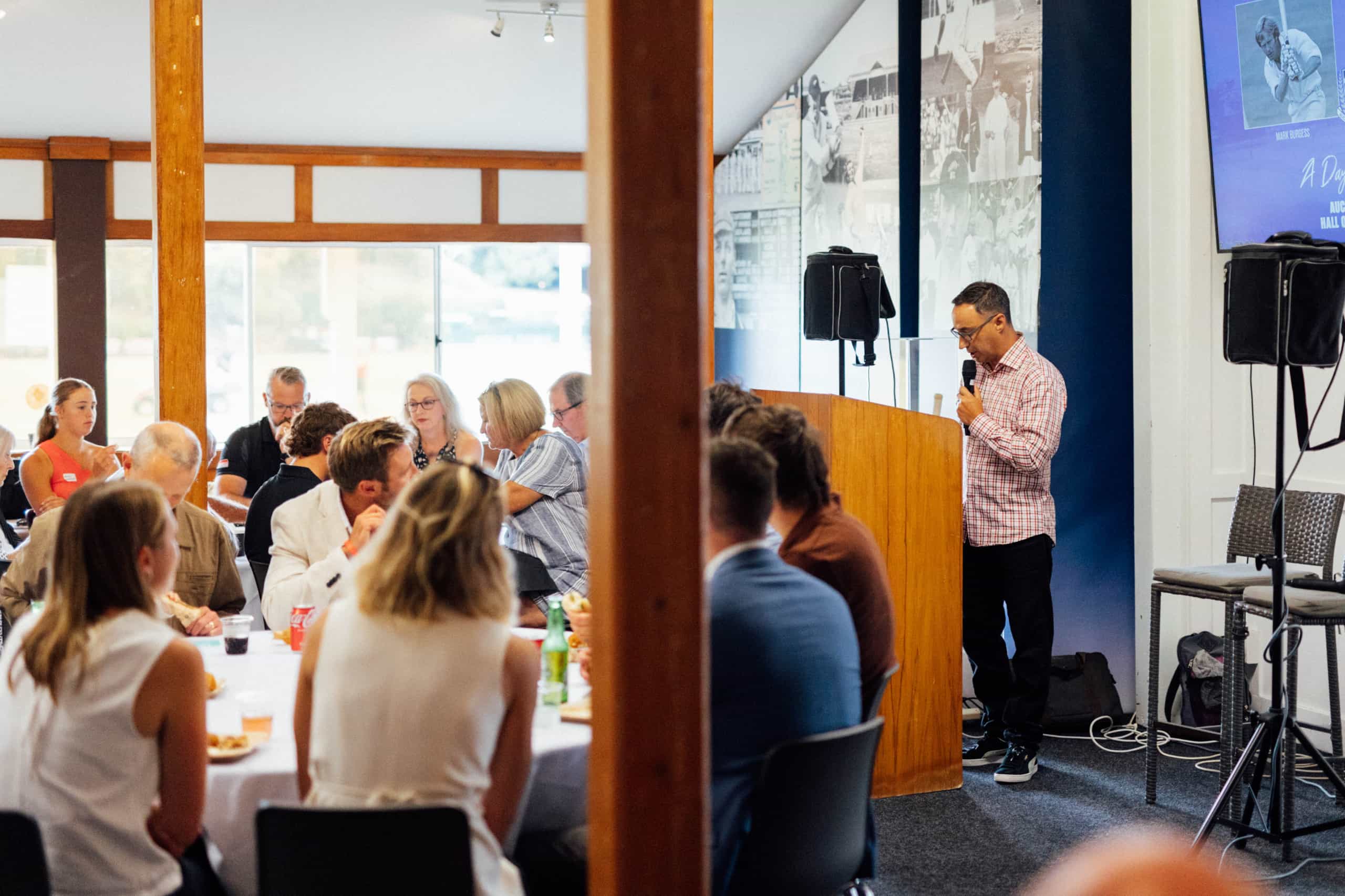 After lunch, guests spent the remainder of the day's play reminiscing and catching up. Present were former Auckland and New Zealand players, coaches, presidents and board members as well as friends and families of Burgess and Howarth.