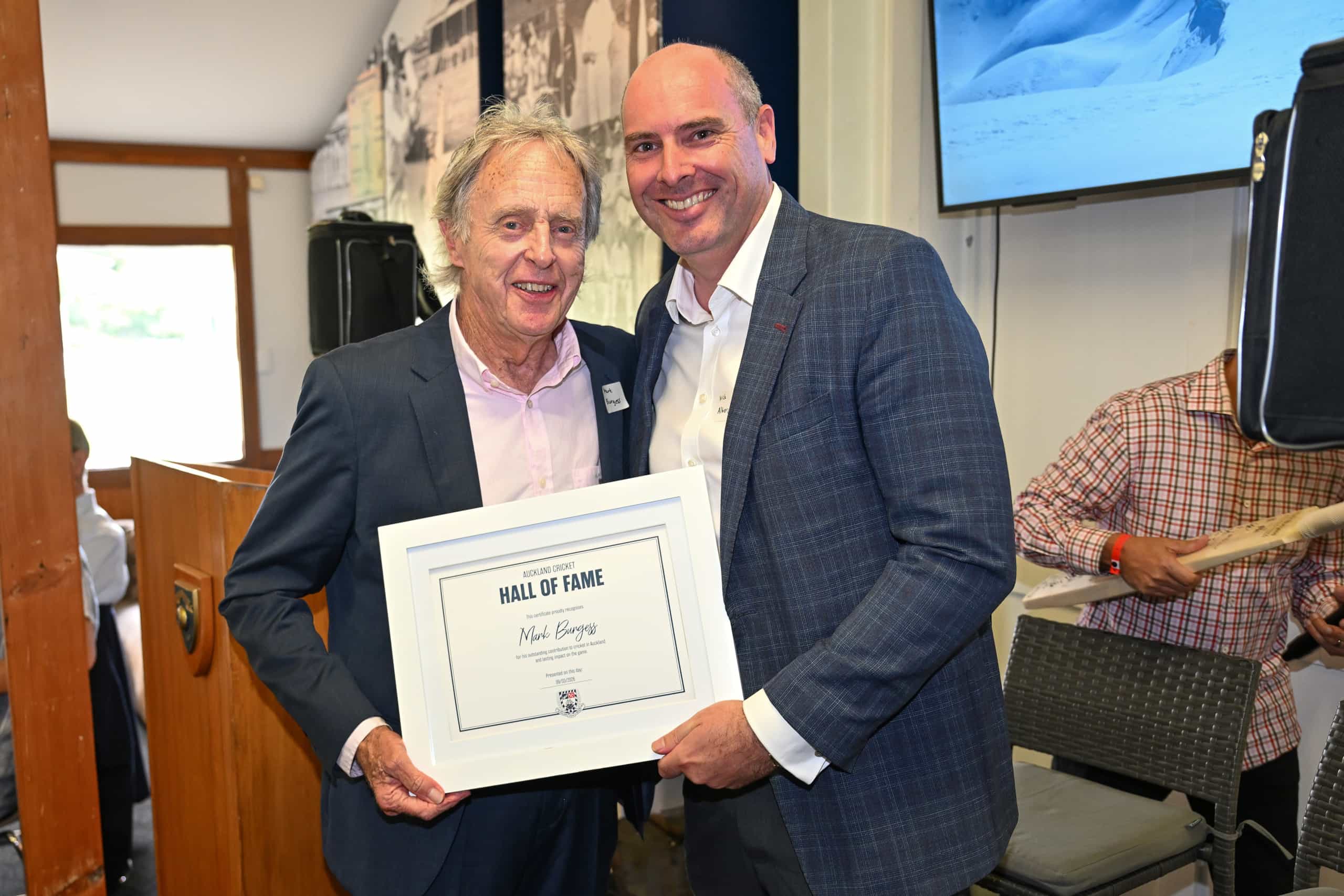 During the first day of the Plunket Shield fixture between Auckland and Otago on Monday 9th of March, Auckland Cricket continued with its Hall of Fame initiative by honouring two of their all time legendary players, Mark Burgess and Hedley Howarth in the Bert Sutcliffe Lounge on Eden Park's Outer Oval.