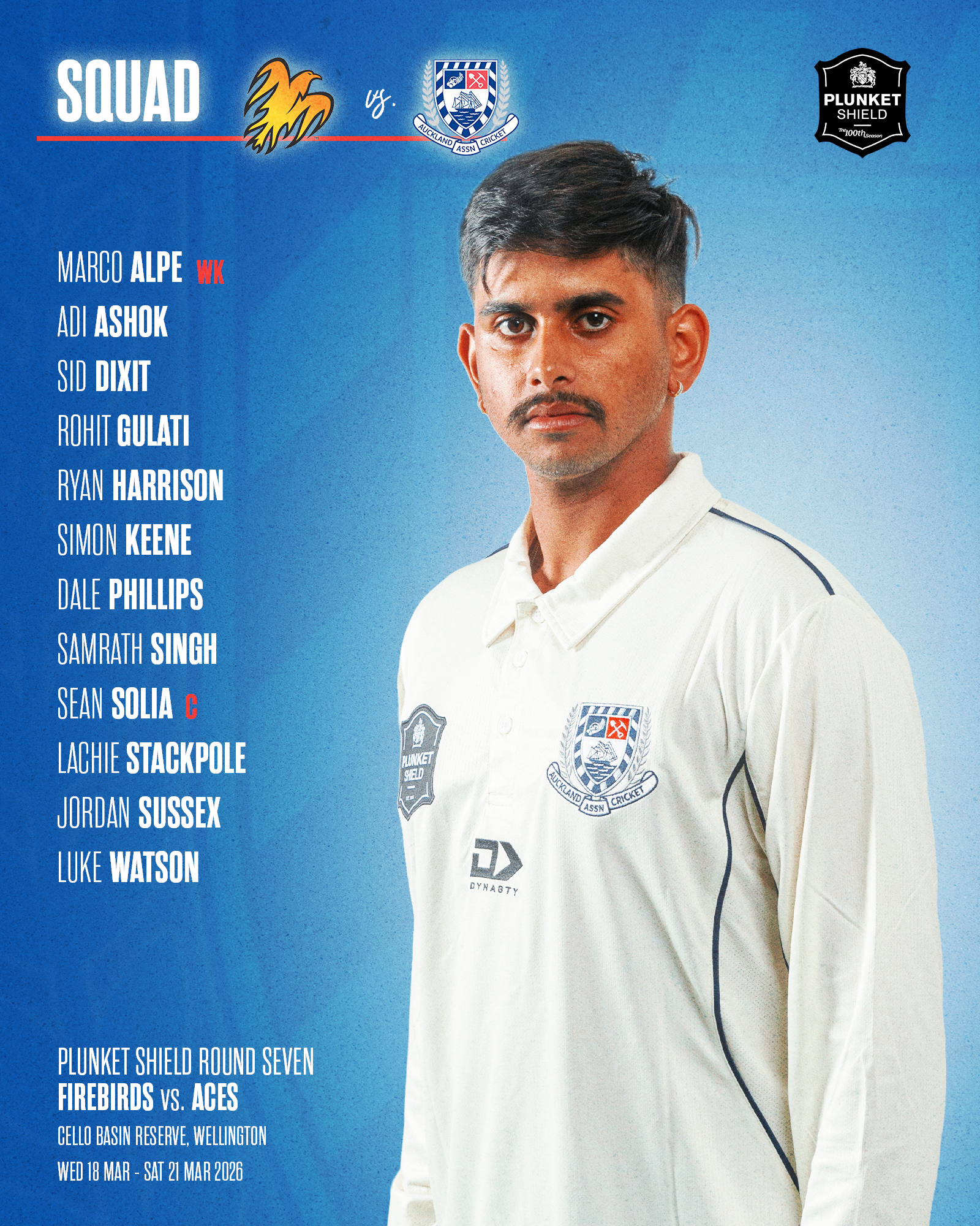 The Auckland ACES travel to Wellington this week to take on the Wellington Firebirds in Round 7 of the Plunket Shield at Cello Basin Reserve, with first ball at 10:30am from Wednesday 18 March to Saturday 21 March.
